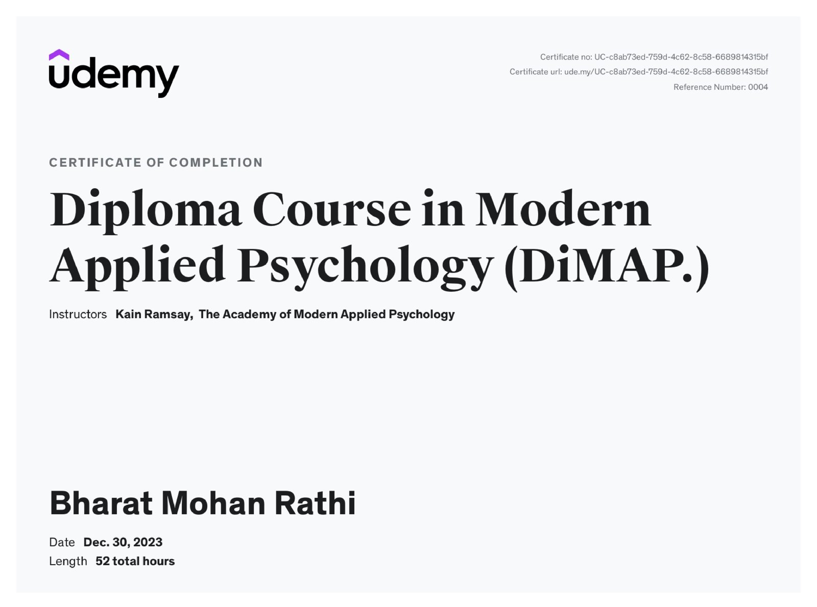 Diploma Course in Modern Applied Psychology (DiMAP.)